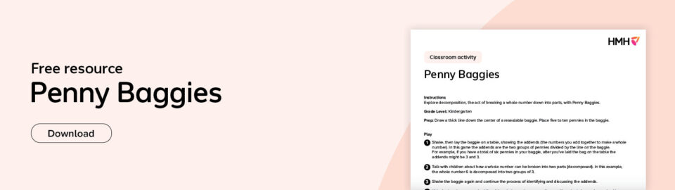 Penny Baggies: Alternatively, you can try this activity that happens to relate to the modern history of penny production being suspended in 2025. Students explore number decomposition by seeing how pennies (or other coins or counters) split up inside a resealable baggie.