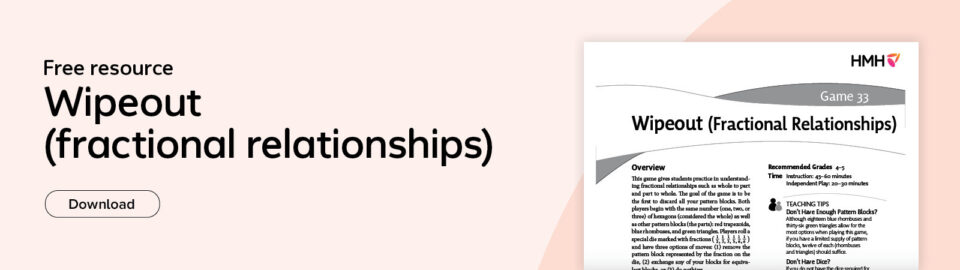 Wipeout: Fractions are a place where many fourth and fifth graders feel stuck, and this game is focused on making fractions visual and fun. It comes from our article on fun fifth grade math activities and is adapted from Lessons for Introducing Fractions: Grades 4–5 by Marilyn Burns.