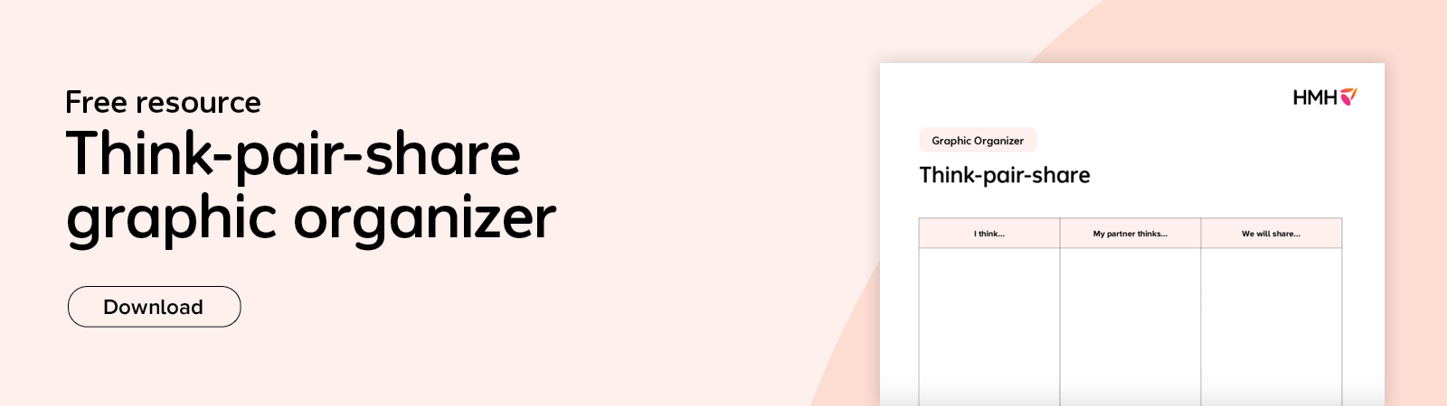 Shaddoe Lambert, who was a secondary ELA teacher for eight years before becoming an HMH product manager, shares, "Think-pair-share is an effective strategy for student engagement because it puts some of the responsibility back on the student. Students are no longer just consumers of information; they're required to create and synthesize it."